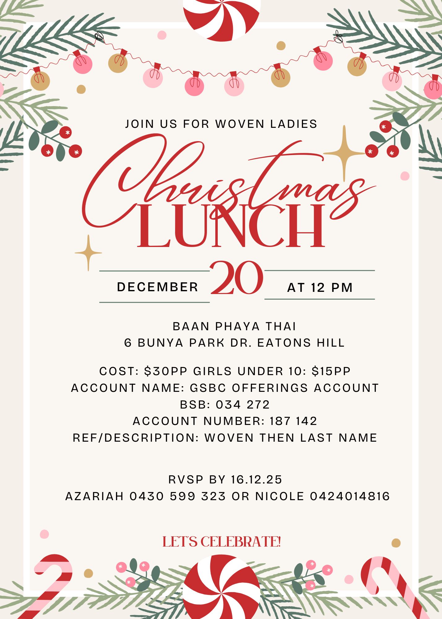 RSVP: By 16th Dec (Questions directed to Azariah 0430 599 323 or Nicole 0424 014 816)